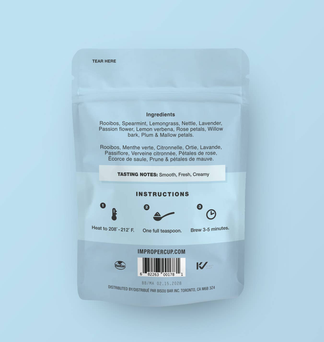 Ingredients: Rooibos, Spearmint, Lemongrass, Nettle, Lavender, Passion flower, Lemon verbena, Rose petals, Willow bark, Plum and Mallow petals.